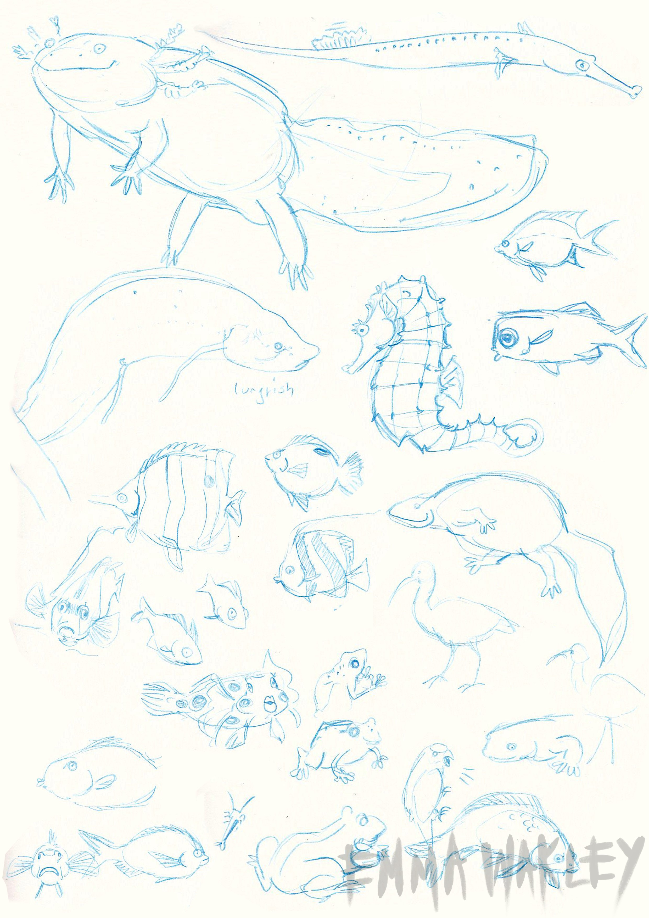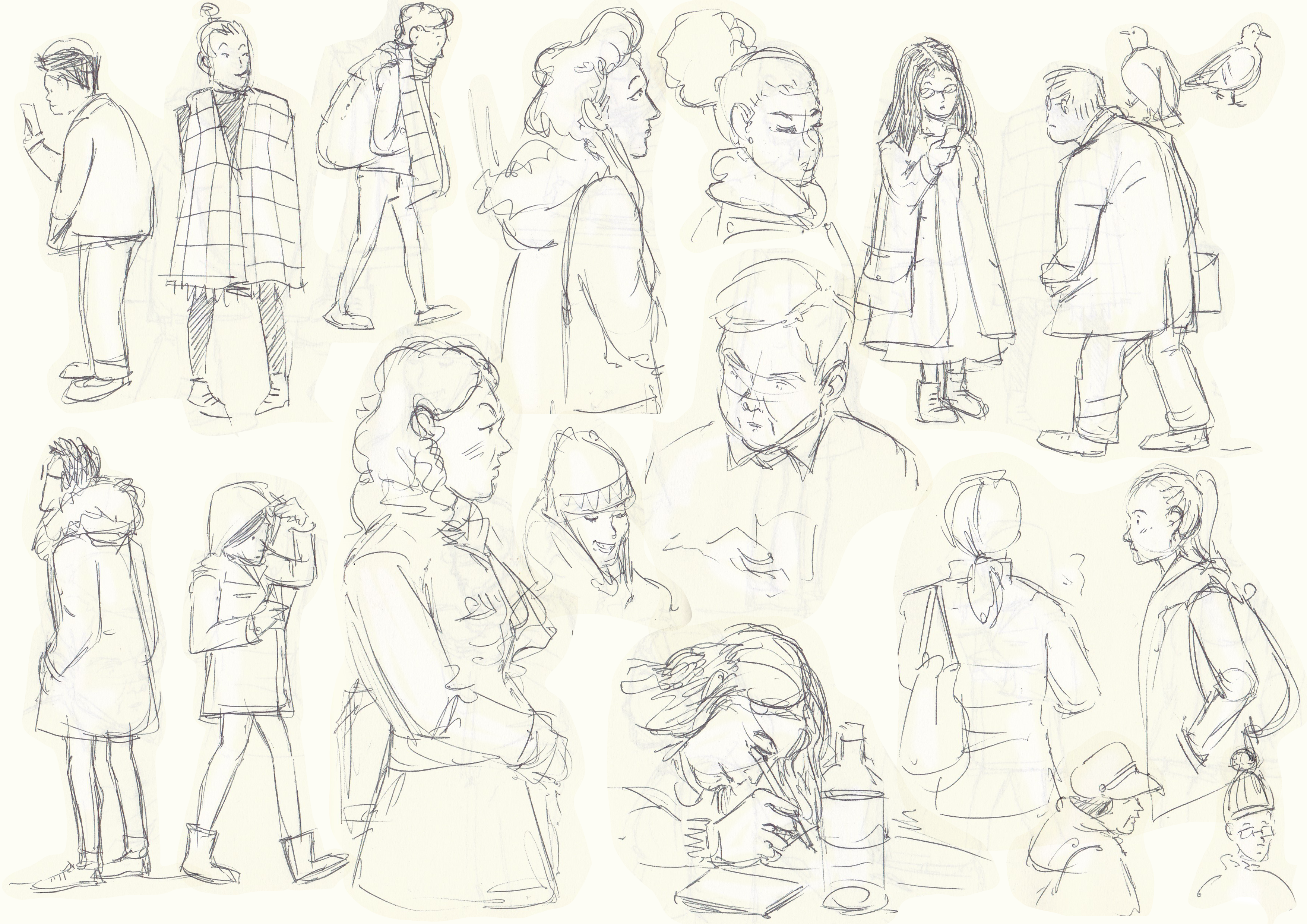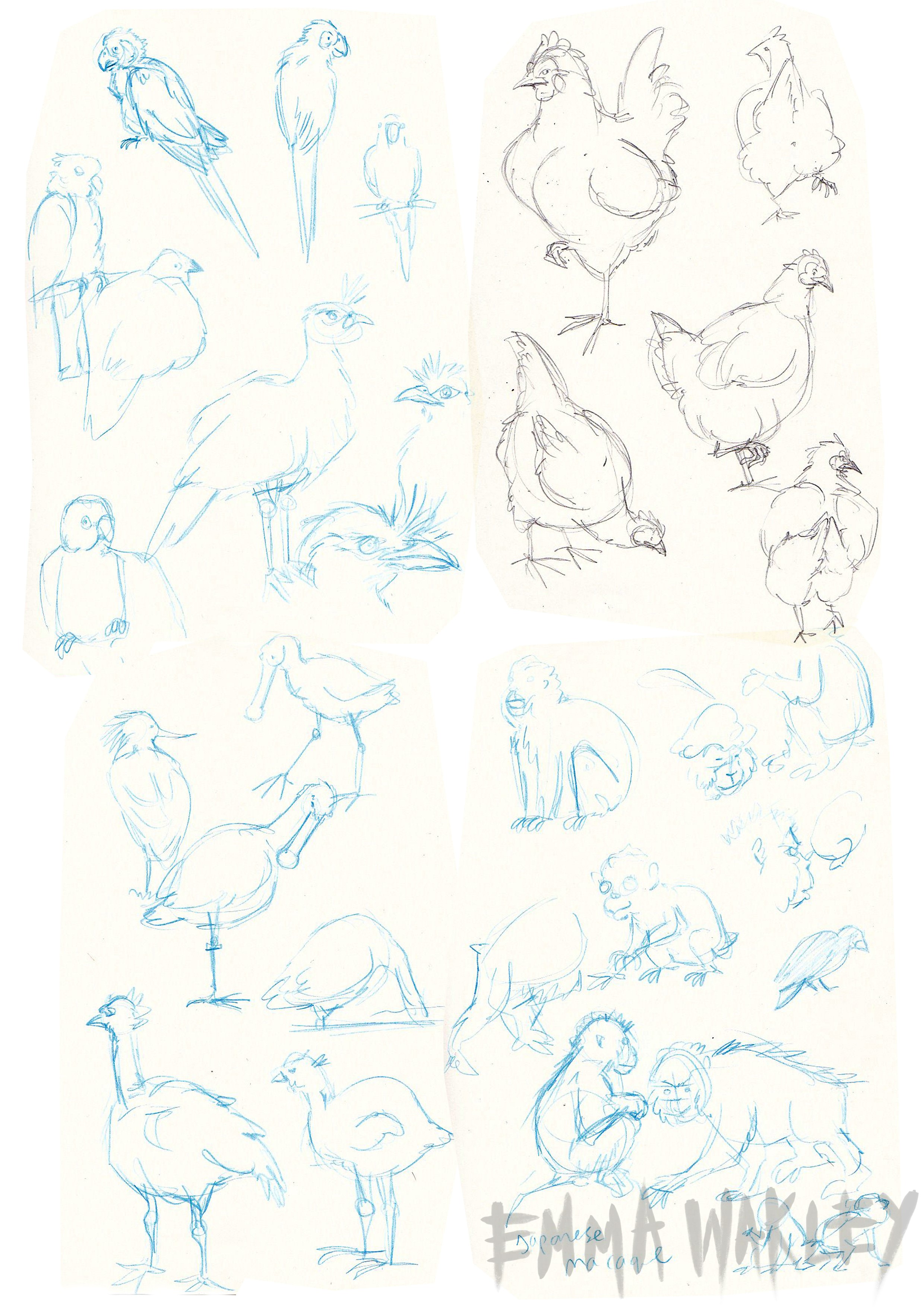 Life drawings, quick human and animal observations, and designs from observation